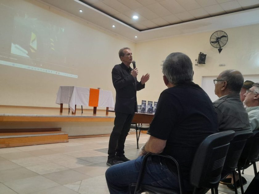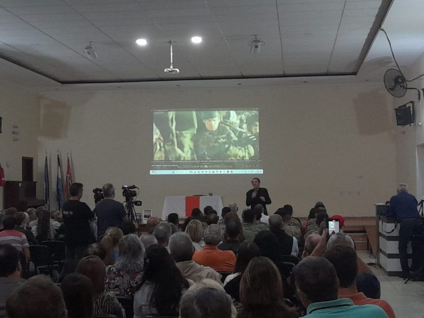 Finalmente, el corresponsal cerró la charla con un mensaje inspirador: «Tenemos héroes vivos y héroes muertos», exclamando un emotivo «¡Viva la patria!» que resonó entre los presentes.