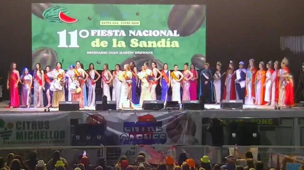 Ante un marco de público que quedará en la historia de la localidad, este domingo se llevó a cabo la tercera y última noche de la 11° Fiesta Nacional de la Sandía en Santa Ana. Fueron tres jornadas, especialmente la de ayer, con una multitudinaria convocatoria, lo que convirtió a esta edición en una de las más exitosas de los últimos años. La joven Belén Goicochea, representante del Centro Social y Deportivo Santa Ana, fue coronada como nueva soberana. El evento culminó esta madrugada con el show del artista uruguayo Lucas Sugo.