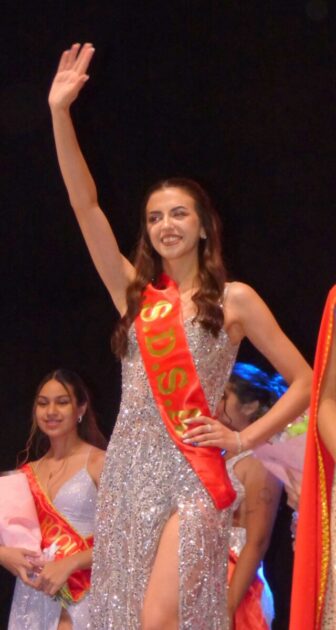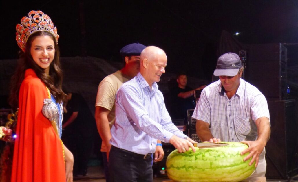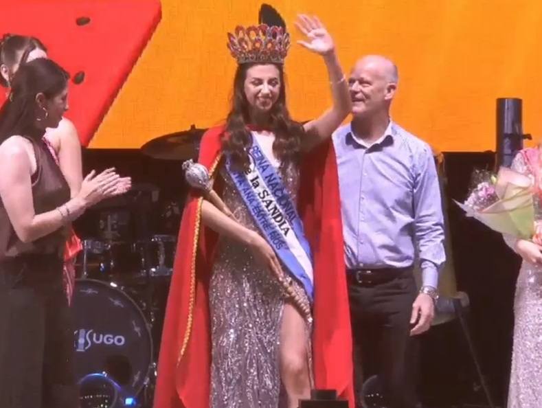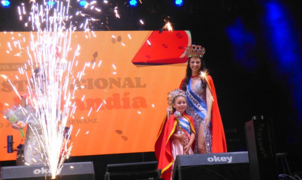 Uno de los momentos más esperados de la noche, como sucede en la mayoría de las fiestas populares de nuestra región, se dio con la elección de la nueva soberana. En ese marco, la joven Belén Goicochea, de 22 años, representante del Centro Social y Deportivo Santa Ana, fue coronada como Reina de la 11° Fiesta Nacional de la Sandía.
