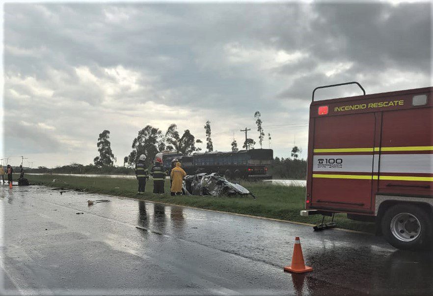 Un automóvil Ford Focus que transitaba en sentido norte sur, debido a las condiciones climáticas y el mal estado de la calzada, habría perdido el control cruzándose de mano e impactando contra un camión que transitaba en sentido sur norte.