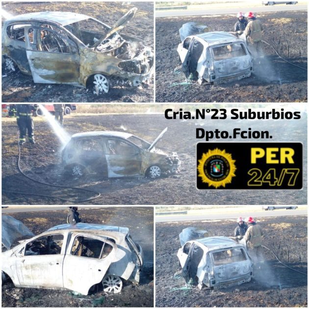 Según se informó a Villa del Rosario Net, el rodado se estaba quemando en la banquina y el fuego estaba avanzando a su alrededor por el pasto seco.