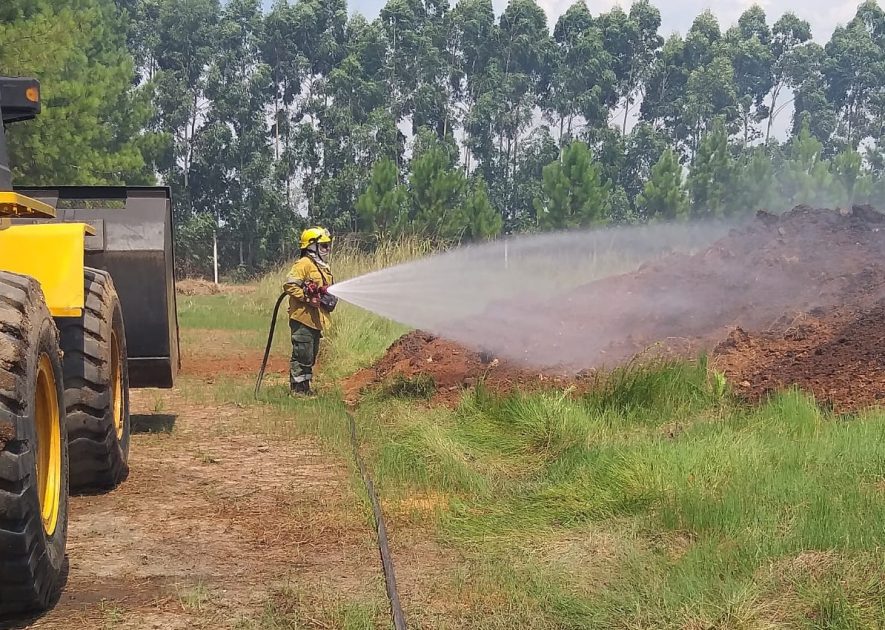 En la sofocante tarde del pasado miércoles, personal del cuartel de Bomberos Voluntarios de Villa del Rosario intervino en un principio de incendio ocurrido en el predio de la empresa Ecochip (fábrica de chips de madera), ubicada en cercanías de la planta de tratamiento de residuos sólidos urbanos de la localidad.