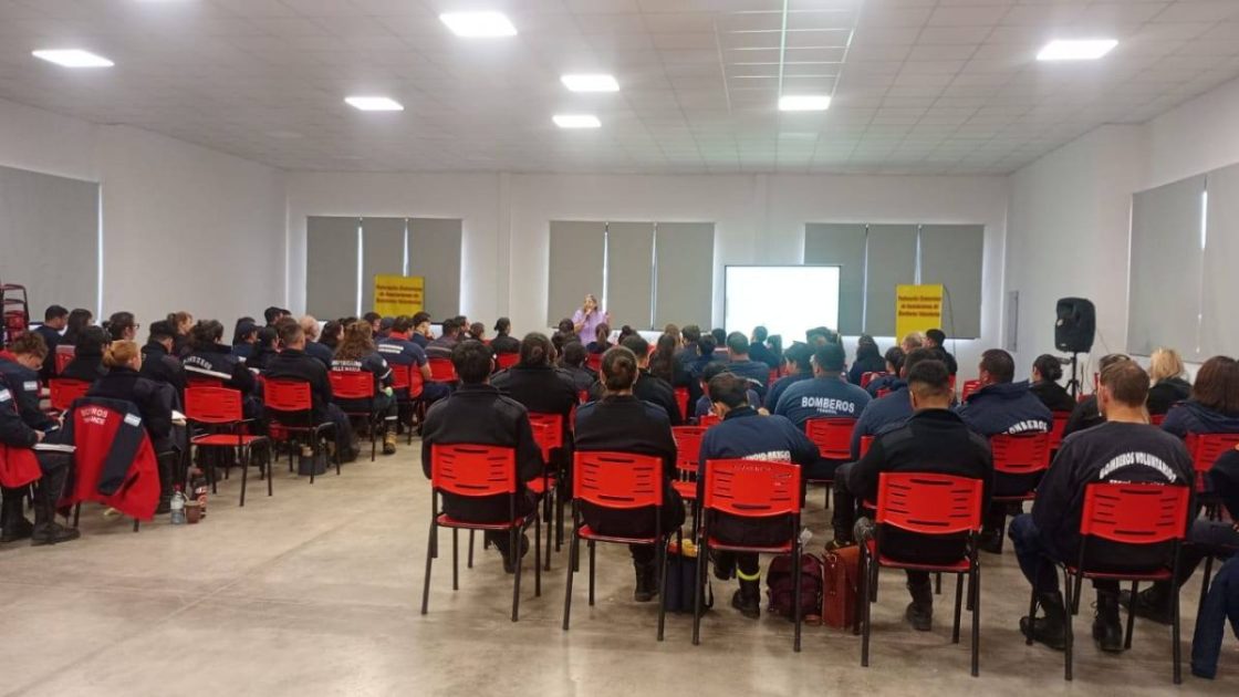 El pasado sábado, un centenar de bomberos voluntarios de la provincia, entre ellos Mario Díaz y Matías Arce, miembros del cuartel de Villa del Rosario, participaron de una capacitación sobre Herramientas para Intervención en Crisis y Orientación a Suicidas.