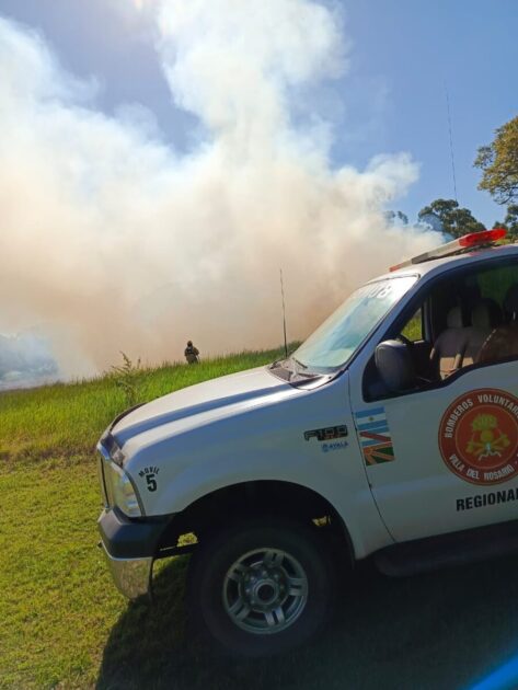 En la tarde del lunes, tras ser alertados por un llamado telefónico, dos unidades del cuartel de Bomberos Voluntarios de Villa del Rosario acudieron a un incendio de pastizales ocurrido en zona del Camping «Ciudad de Chajarí», en jurisdicción de Santa Ana.