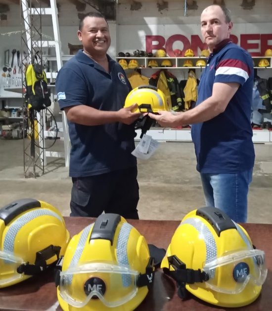 En la noche del miércoles, la comisión directiva de la Asociación Bomberos Voluntarios de Villa del Rosario concretó la entrega de 5 nuevos cascos para incendios forestales de última tecnología al personal de su cuartel.