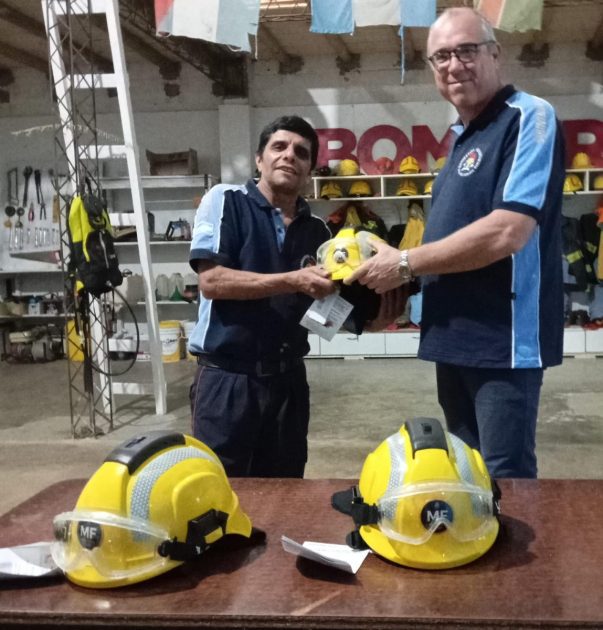 En la noche del miércoles, la comisión directiva de la Asociación Bomberos Voluntarios de Villa del Rosario concretó la entrega de 5 nuevos cascos para incendios forestales de última tecnología al personal de su cuartel.