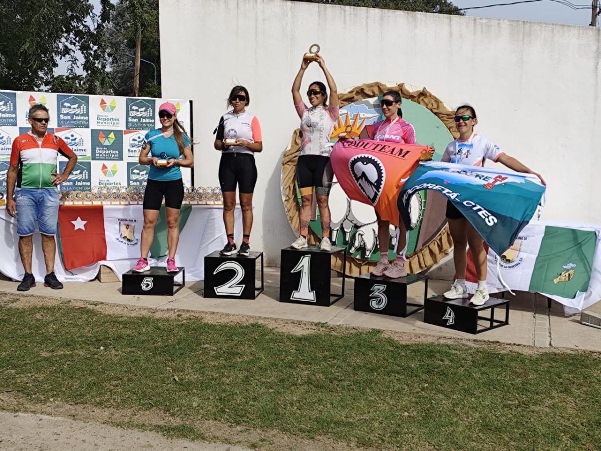 En esta segunda fecha, organizada por la Dirección de Deportes de San Jaime de la Frontera, acompañaron a las ciclistas locales la Presidente Municipal, Vanina Perini, y el secretario de Gobierno, Diego Cortiana.