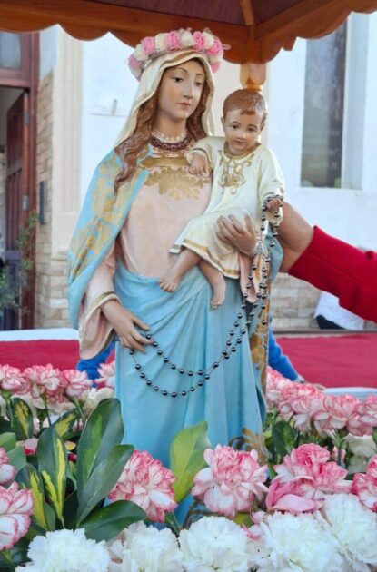 Como cada 7 de octubre, este martes Villa del Rosario celebró a su santa patrona, la Virgen del Rosario. Las celebraciones en la jornada central comenzaron a las 10 de la mañana con la Misa, mientras que a las 16.30 horas, frente al templo parroquial, se realizó una segunda Misa y, luego, la tradicional procesión alrededor de la plaza José Manuel Estrada de nuestra localidad.