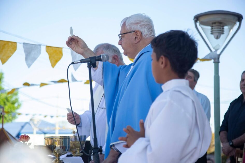 Las actividades religiosas, por la tarde, fueron encabezadas por el obispo de la Diócesis de Concordia, Monseñor Gustavo Zurbriggen, quien estuvo acompañado por el cura párroco Juan Percara.