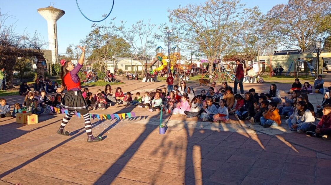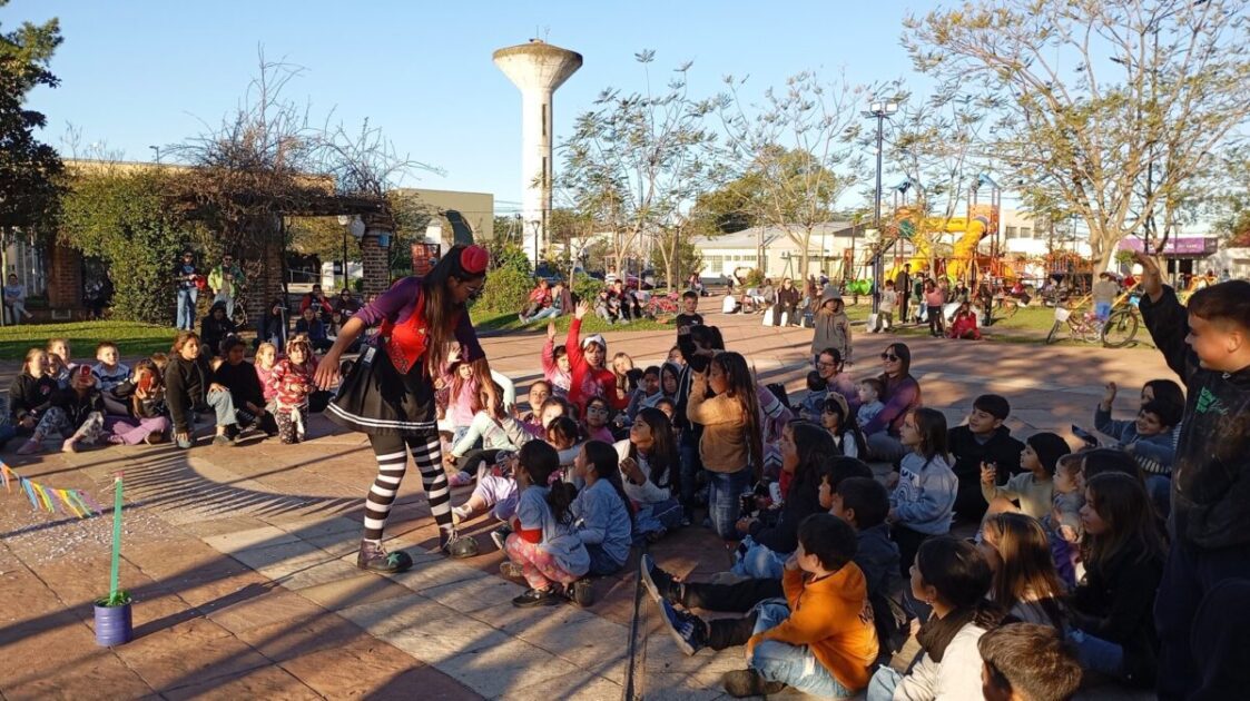 En la plaza José Manuel Estrada, la artista circense Garúa desplegó su talento y profesionalismo con un espectáculo que hizo reír y disfrutar a chicos, adolescentes y adultos.