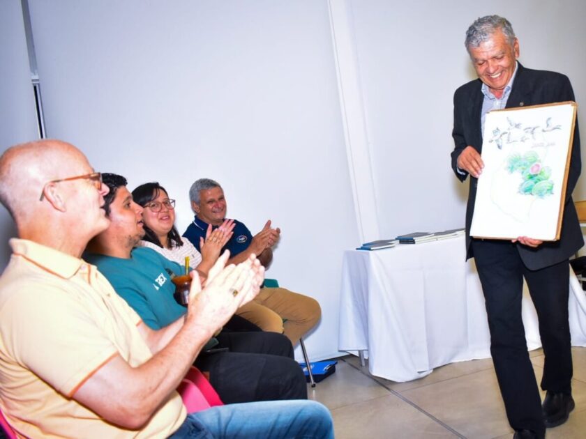 Los santanenses pudieron disfrutar de la presencia de una destacada personalidad cultural entrerriana quien estuvo acompañado por los artistas Hugo y Celestino Mena, y el artista plástico Vicente Cúneo.