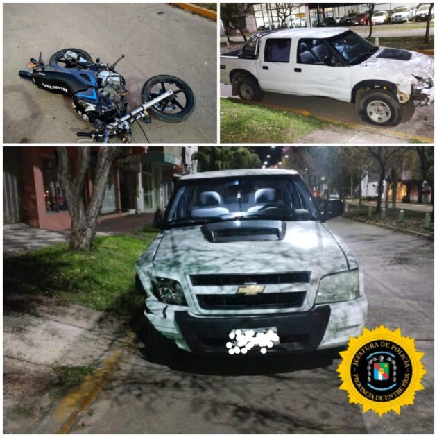 Este sábado, pasadas las 5 de la mañana, se produjo un siniestro vial en la intersección de Av. Siburu y Estrada de la ciudad de Chajarí, entre una camioneta y una motocicleta.