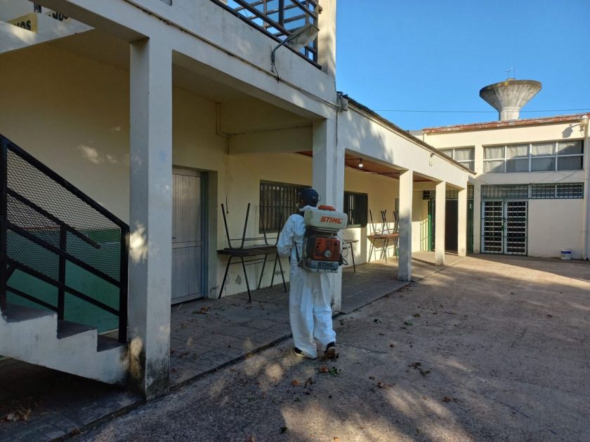 Personal de la Secretaría de Obras y Servicios Públicos del Gobierno de Villa del Rosario llevó adelante trabajos de fumigación en espacios internos y externos de las distintas instituciones educativas del ejido urbano y rural.