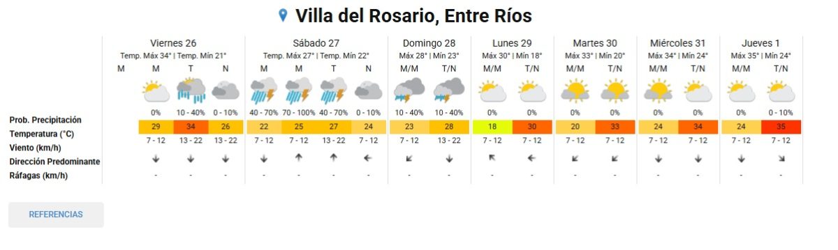 El alerta naranja es para este sábado en horas de la mañana en: Paraná, La Paz, Diamante, Nogoyá, Villaguay, Concordia, Federal, Feliciano, Federación y San Salvador.