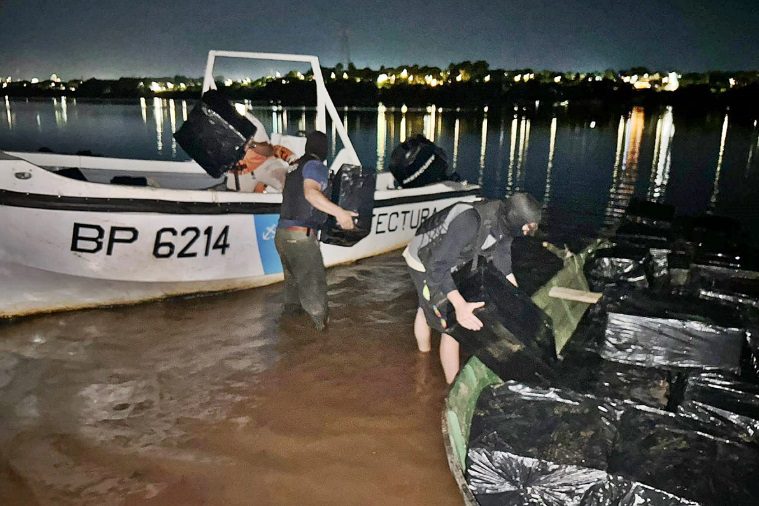 Incautaron un importante cargamento de cigarrillos de contrabando en inmediaciones del Club Regatas, en Concordia, a la altura del kilómetro 334,6 del río Uruguay, durante un procedimiento de la Prefectura Naval Argentina a cargo del prefecto Jorge Ribinski.