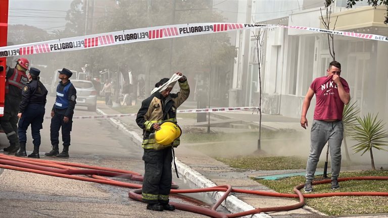 Diana, esposa de Farrás, comentó que el fuego inició en un sillón y rápidamente avanzó en la vivienda. Los locales comerciales más afectados son los lindantes hacia la derecha.