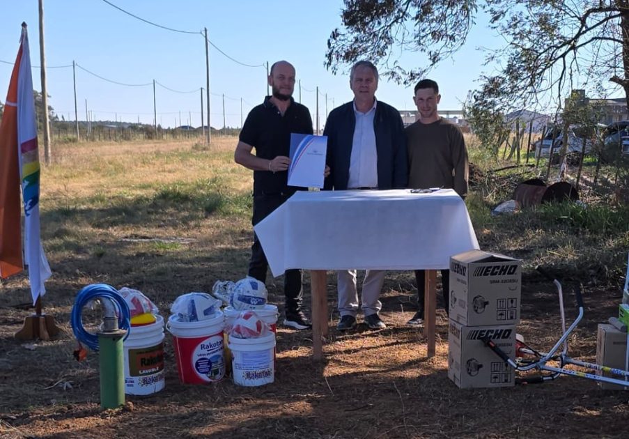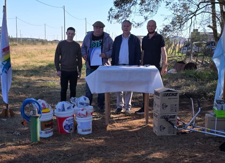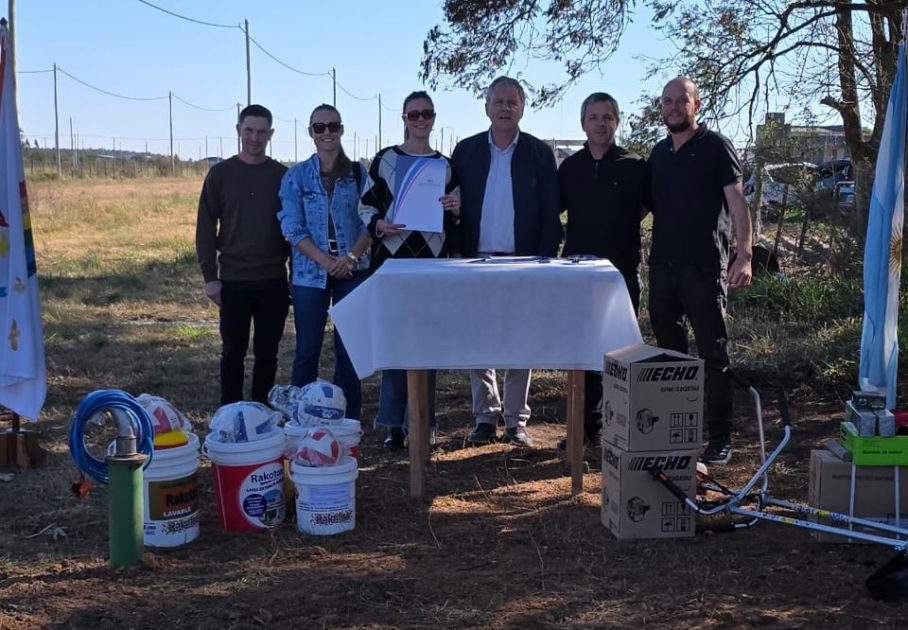 En primer lugar, el funcionario nacional hizo entrega formal de un aporte de 10 millones de pesos para la obra de perforación de un nuevo pozo que se lleva adelante en la localidad, gestionado por la Cooperativa de Agua Potable de Villa del Rosario y financiada por el ente binacional.