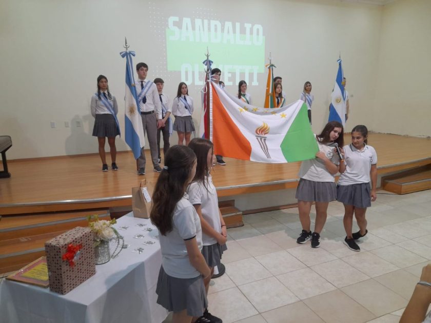 El acto comenzó con la proyección de videos de ex rectores del establecimiento, quienes rememoraron su experiencia y las distintas anécdotas vividas en la escuela. Tras la entonación de las estrofas del Himno Nacional y la Marcha de Entre Ríos, se realizó la presentación de la bandera institucional de la Escuela «Sandalio Olivetti», que desde esta semana cuenta con la aprobación del Consejo General de Educación de Entre Ríos. La misma fue diseñada el pasado año por las estudiantes Julieta Chervo, Candela Croattini, Esperanza Tonina, Sofía Calgaro y Violeta Perini.