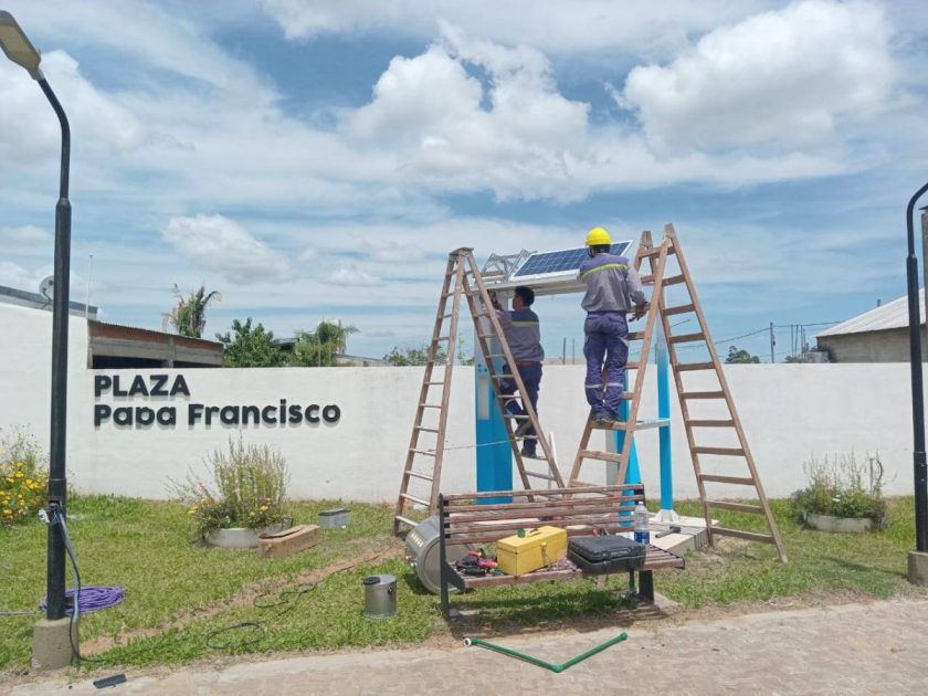 Este lunes, la empresa ENERSA finalizó el montaje completo de la nueva estación solar ubicada en la plazoleta Papa Francisco, del barrio que lleva el mismo nombre en nuestra localidad.