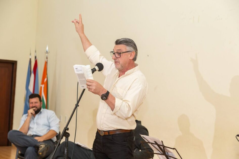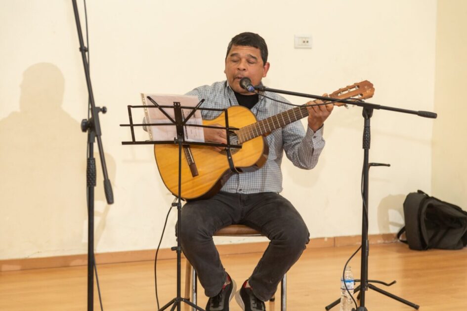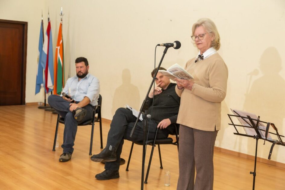 El antropólogo también dio lugar a la música, la cual se hizo presente en la apertura a través del locutor y músico local Andrés Albiero y luego en recitados a cargo del músico Sergio Pozzi. Además, el licenciado invitó a la ex docente María del Rosario Perini a compartir la lectura de algunos párrafos de su libro, convirtiéndose en uno de los momentos más emotivos de la noche.