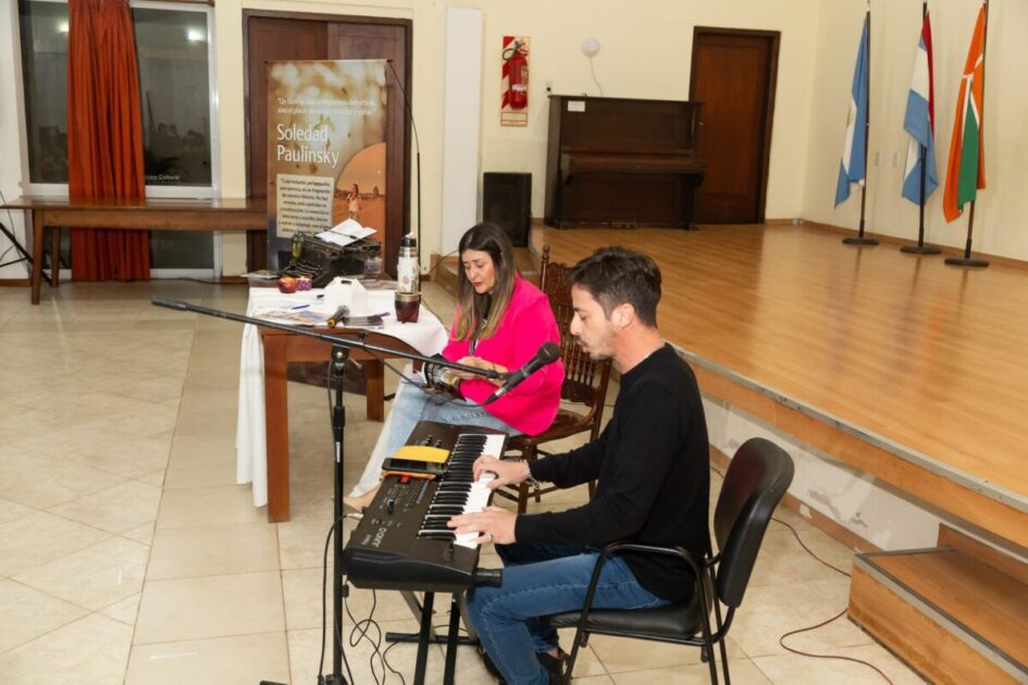 Por otro lado, el pasado viernes, en el cierre de la primera edición de la Feria del Libro de nuestra localidad, la docente chajariense Soledad Paulinsky presentó su obra literaria «Un libro sin editar». La autora estuvo acompañada por las melodías emitidas por el teclado ejecutado por Iván Calei.