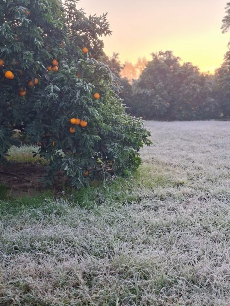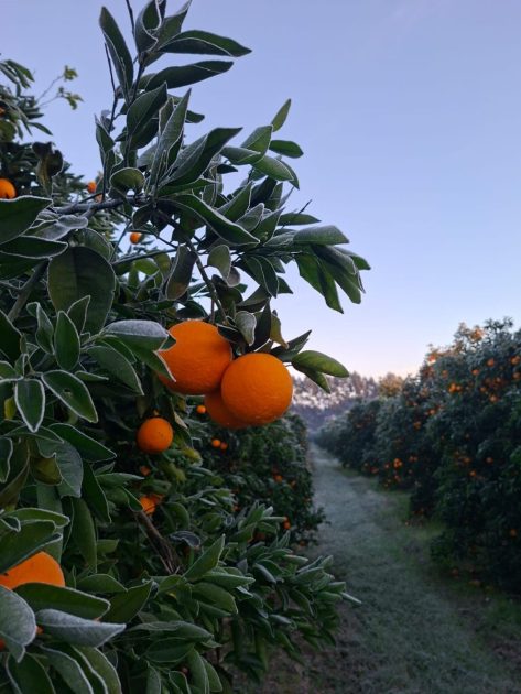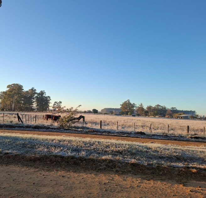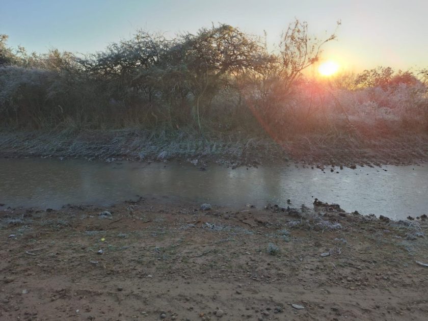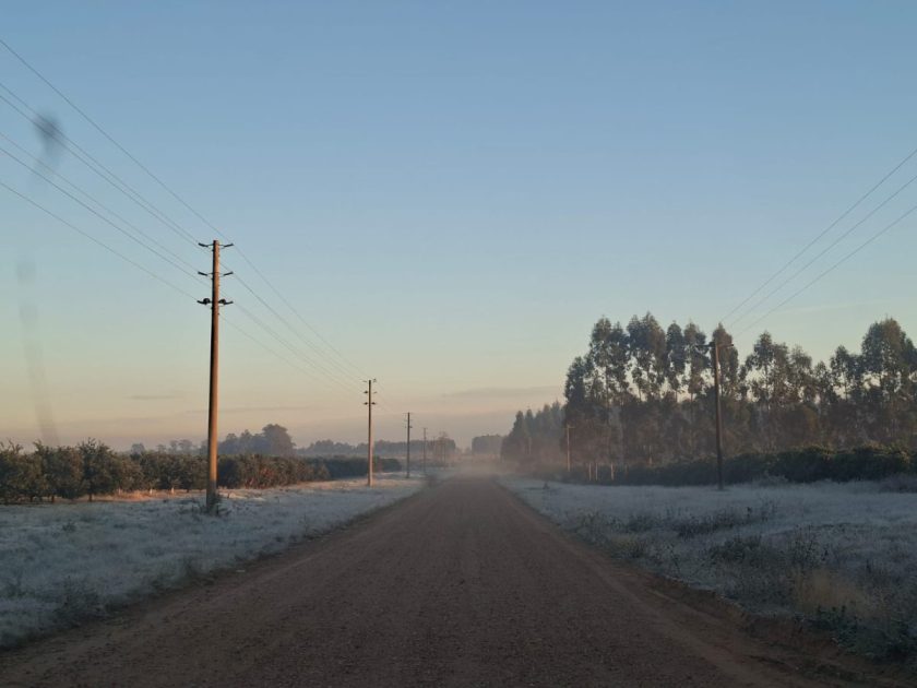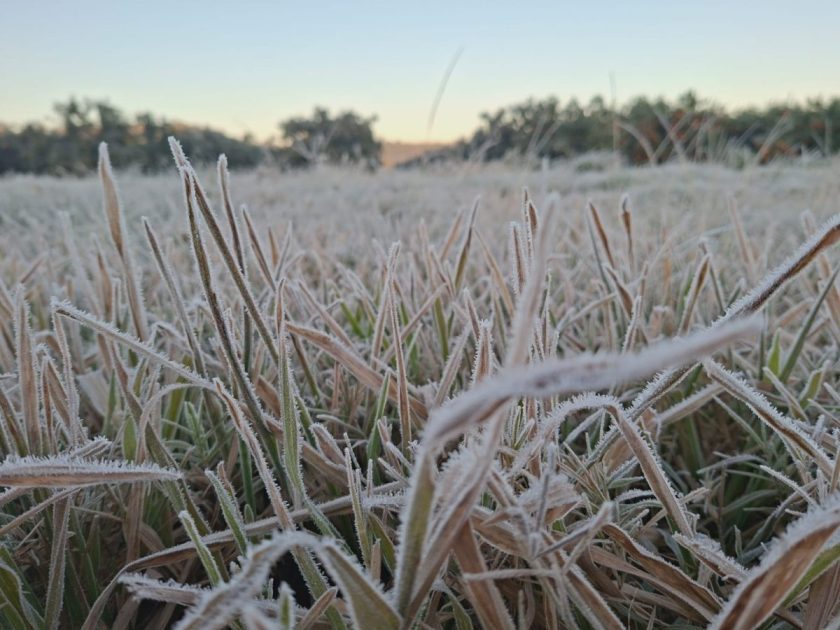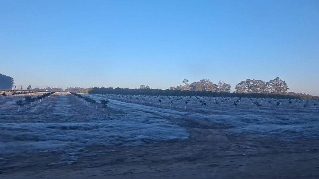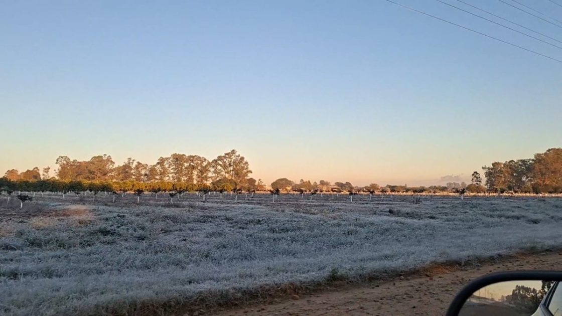 La helada se hizo sentir con fuerza. El suelo y los vehículos amanecieron completamente cubiertos de escarcha, pintando un paisaje blanco en Villa del Rosario y localidades del norte entrerriano.