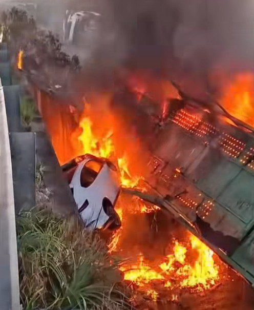 Un camión que remolcaba autos 0 kilómetro despistó, cayó de un puente y se prendió fuego en el kilómetro 414 de la autovía 14, en la provincia de Corrientes. El accidente se produjo este martes cerca de las 9 de la mañana.