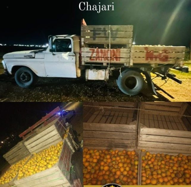 De acuerdo a lo informado por fuentes policiales a Villa del Rosario Net, a través de un llamado telefónico, la Policía recibió el aviso que personas desconocidas a bordo de un camión habrían salido de una quinta con bines conteniendo frutas (naranjas), sin tener autorización alguna, dando descripciones del rodado.