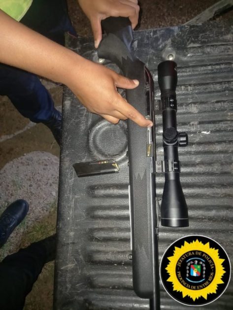 Se habría divisado minutos antes que dicho rodado venía en sentido este-oeste alumbrando hacia los costados de la ruta y tras un breve control, se encontró dentro del rodado una “carabina semi automática 22” marca, “savage” modelo 64, con cartuchería en recámara y el cargador de la misma.