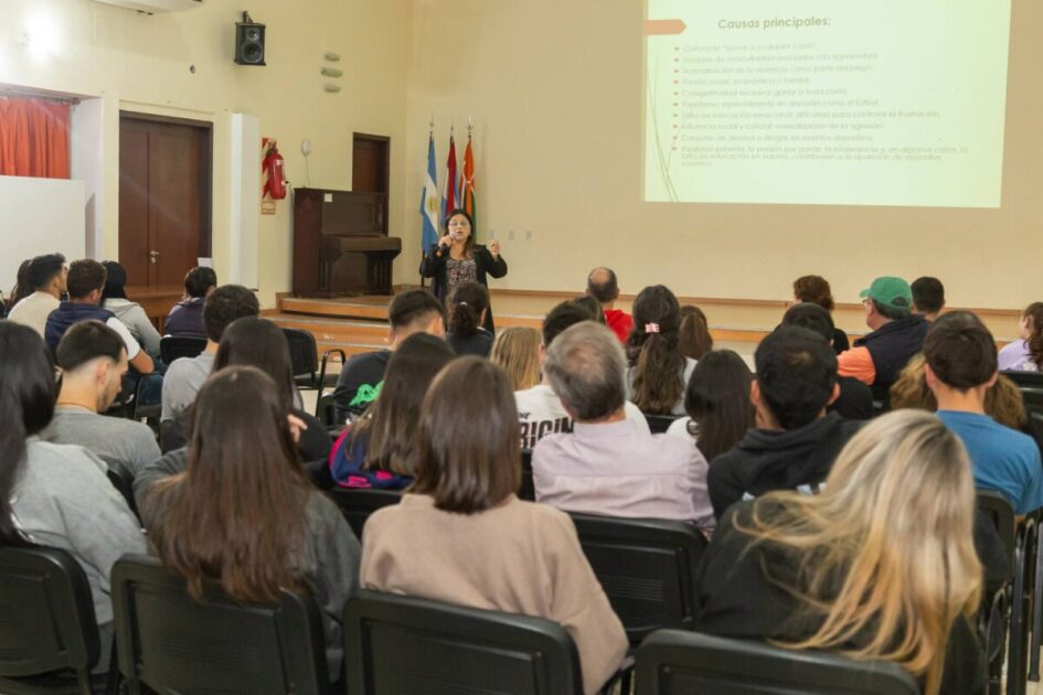 El pasado viernes, en el Centro Cultural de nuestra localidad, se llevó a cabo la charla “Violencia en el Deporte”, un espacio de reflexión que promovió un valioso intercambio entre la disertante, psicóloga Cecilia Paredes, y el público presente.