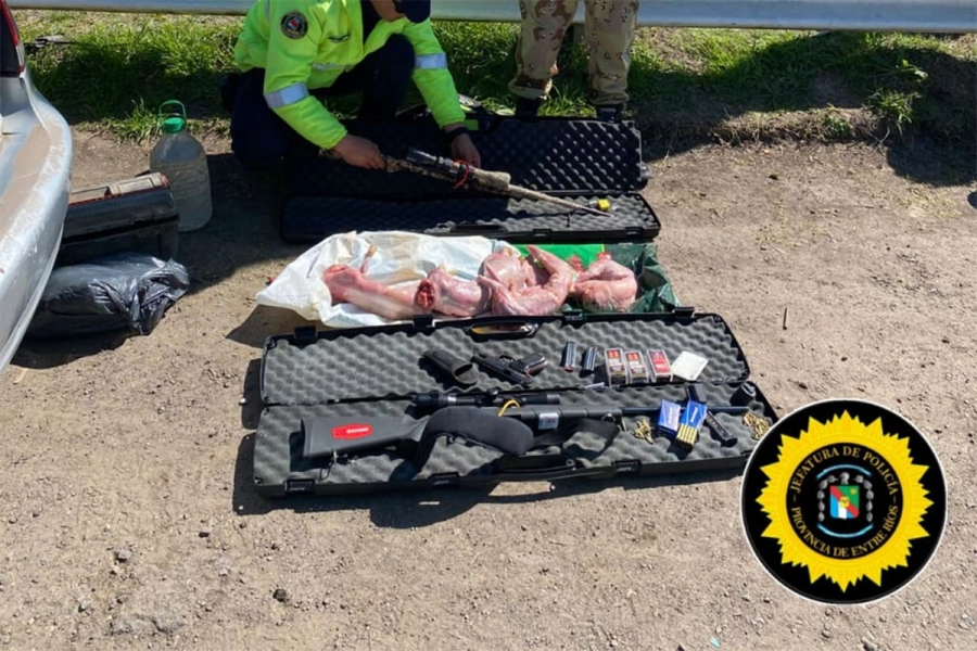 Al revisar el vehículo, los uniformados hallaron dos cajas plásticas de transporte de armamento, dentro de las cuales había una carabina semiautomática marca Savage calibre .22 PLG y otra carabina semiautomática marca Magtech, del mismo calibre. Además, transportaba una pistola semiautomática Bersa calibre .22 PLG y, en el baúl, varias piezas de vizcachas.