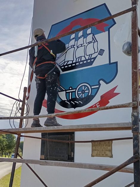 Además, se llevó a cabo la aplicación de pintura látex sobre los dos parámetros verticales que sostienen la mencionada estructura.