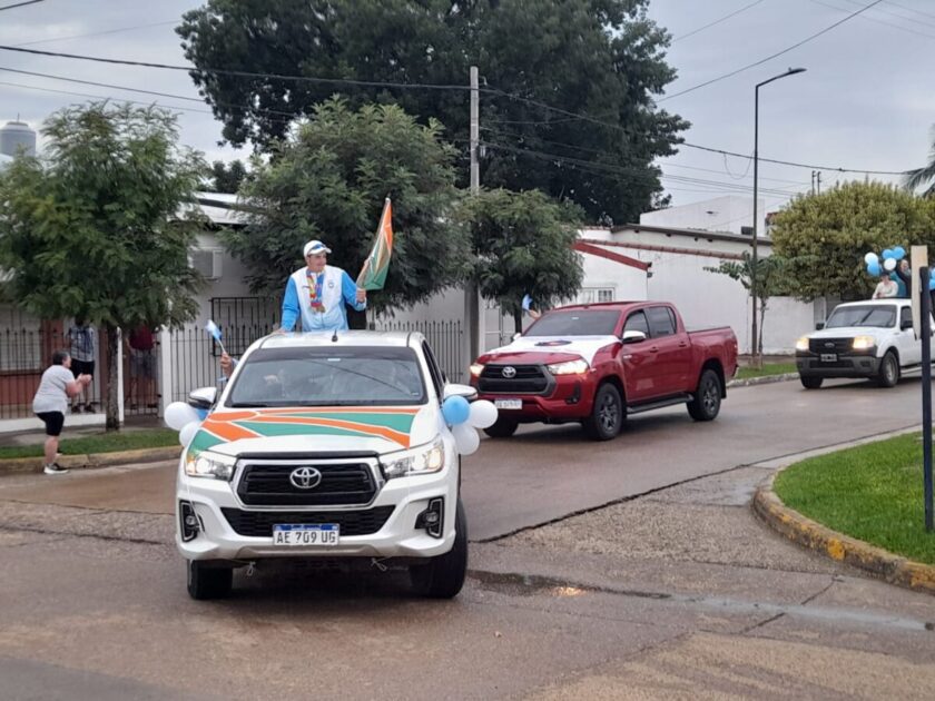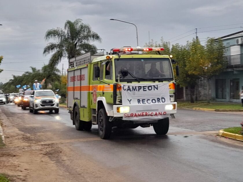 Gabriel Tonina llegó esta mañana a la localidad y fue recibido por familiares, amigos y vecinos en el arco de entrada, en Av. Presbítero Abecia, y desde allí se realizó una caravana por las calles de la localidad, donde también recibió el cariño de toda la comunidad. La misma fue encabezada por una autobomba de Bomberos Voluntarios.