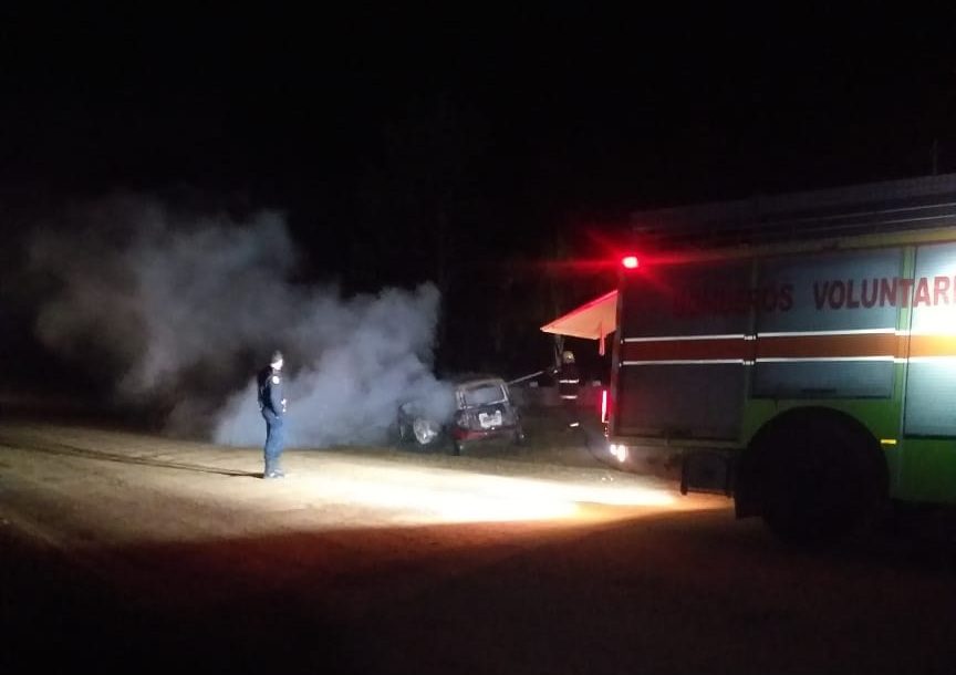 Pese a la tarea del personal bomberil, el automóvil Renault 4L fue destruido por las llamas.