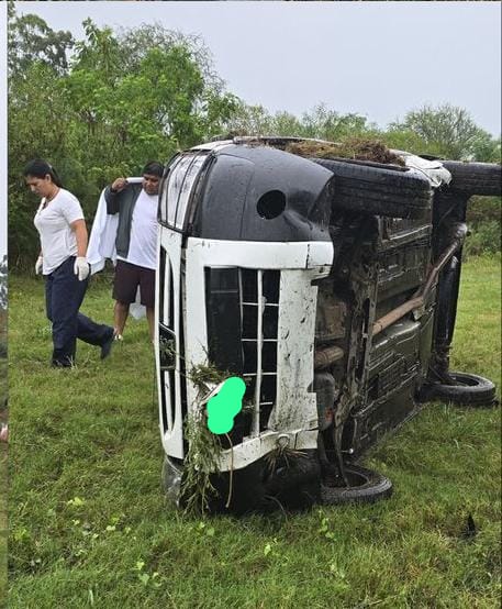 Allí, una Peugeot Partner, que se trasladaba de norte a sur, perdió el control debido a la existencia de un espejo de agua en la cinta asfáltica y volcó sobre el lateral oeste de la ruta.