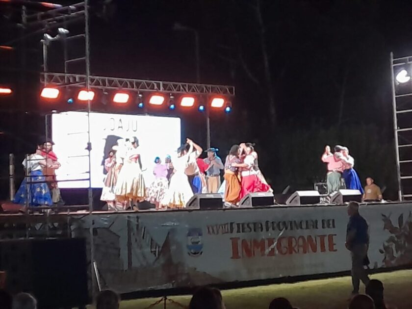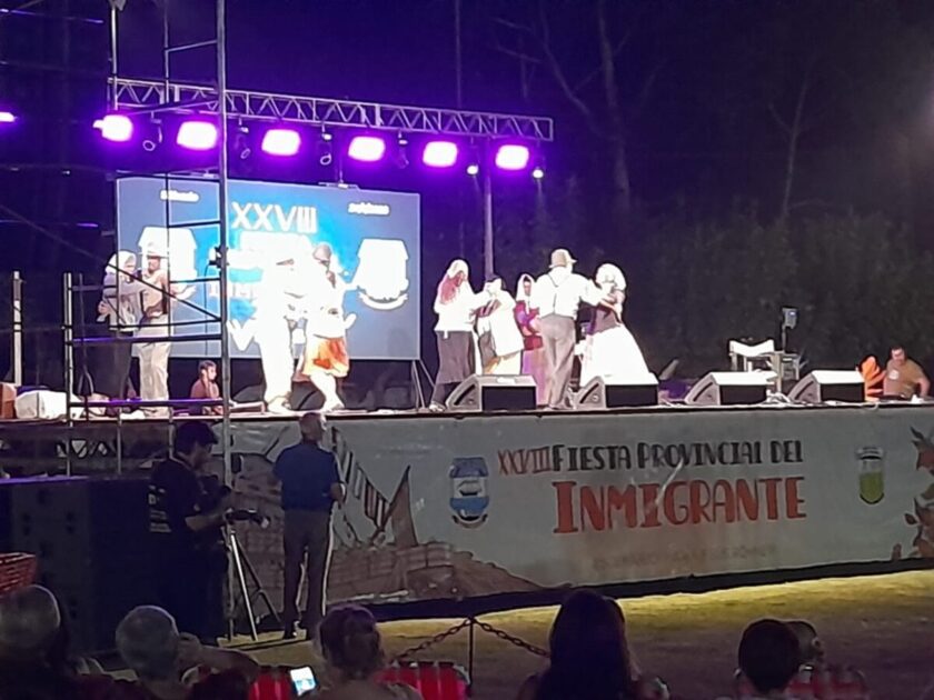 La Fiesta Provincial del Inmigrante, que volvió a convocar a una multitud, se desarrolló este sábado con rotundo éxito en el predio del Centro Integrador Comunitario (CIC) de nuestra localidad. El espectáculo inició a las 21.30 horas con la bendición impartida por el cura párroco Juan Percara y entonación de las estrofas del Himno Nacional, interpretadas por el artista local Matías Fochesatto.