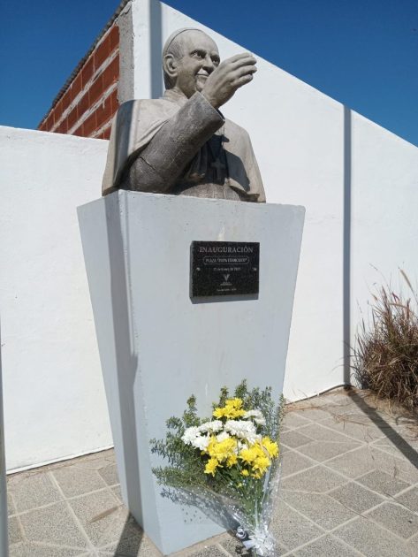 Esta mañana, Néstor Panozzo, Maricel Chanuar y Maximiliano Dal Mazo, concejales del bloque de Juntos por Entre Ríos de Villa del Rosario, depositaron una ofrenda floral en el busto del papa Francisco, ubicado en la Plazoleta que lleva su nombre, en el barrio homónimo de nuestra localidad.