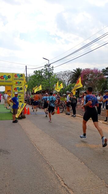 La prueba, que tuvo como epicentro el Centro Cultural, frente a la plaza José Manuel Estrada de nuestra localidad, se disputó sobre una distancia sprint, es decir 5km de pedestrismo, 20 de ciclismo y 2500 metros de pedestrismo.